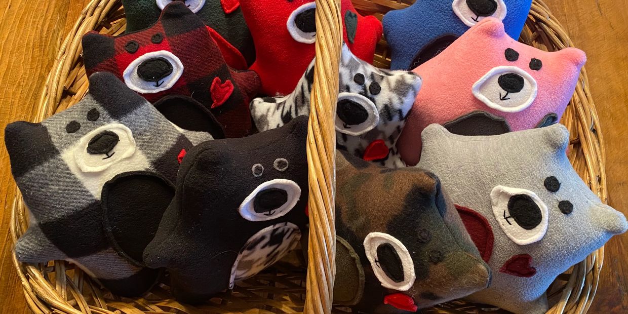 I began making, selling, and donating holiday-themed and custom-designed toys including stuffed squeaky toys, buddy bears, braided ropes, fleecy vests, collars, quilts, reversible bandanas, catnip-filled fringed pillows, and more. I truly enjoy the challenge of a client’s “what if” request. After all, Love Lucky Dog is all about fueling “